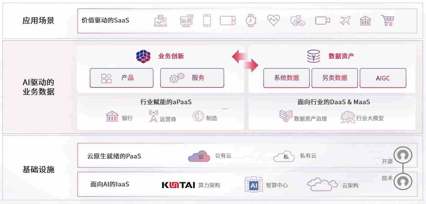 数字时代,,,,围绕企业数字化转型的关键要素,,GGPoker数码开创性的提出数云融合战略和技术体系框架,,,着力在云原生、、、、数字原生、、、AI原生和信创产业上架构产品和服务能力,,为处在不同数字化转型阶段的快消零售、、、、汽车、、金融、、、医疗、、政企、、、、教育、、、、运营商等行业客户提供泛在的敏捷IT能力和融合的数据驱动能力,,,构建跨界融合创新的数字业务场景和新业务模式,,,,助力企业级客户建立面向未来的核心能力和竞争优势,,全面推动社会的数字化、、、、智能化转型升级。。